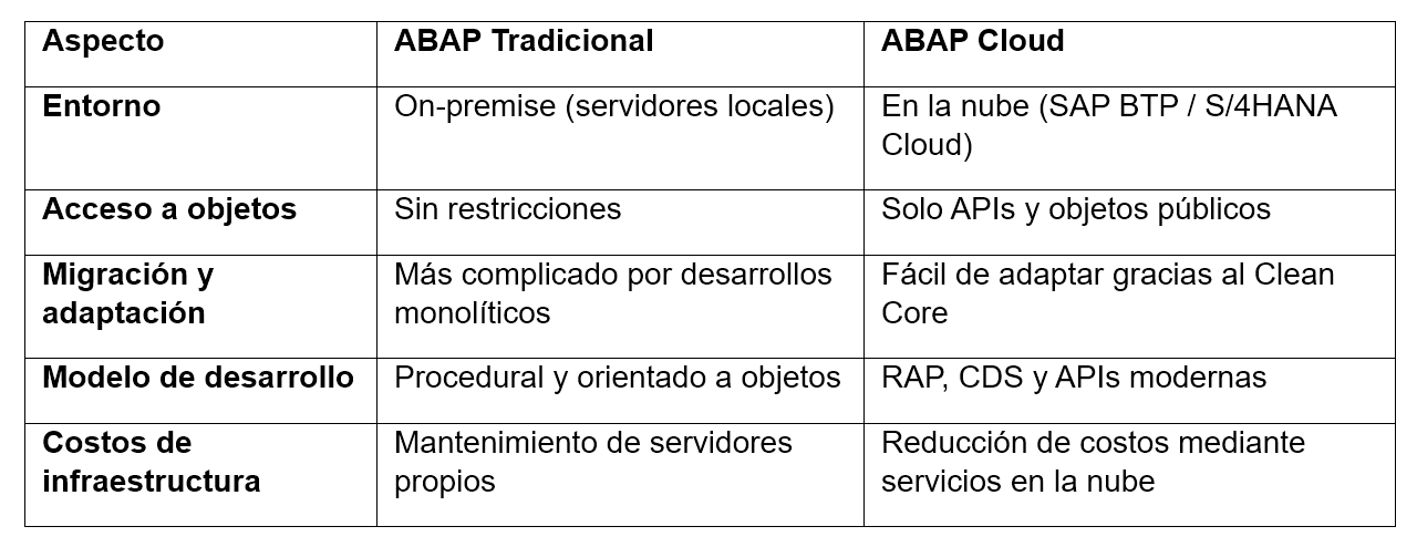 3. Diferencias Clave entre ABAP Tradicional y ABAP Cloud