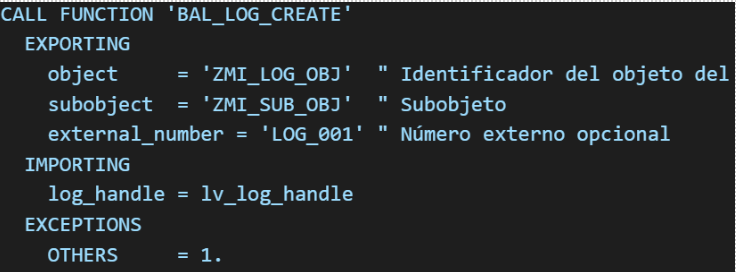 Implementación de BAL_LOG en ABAP