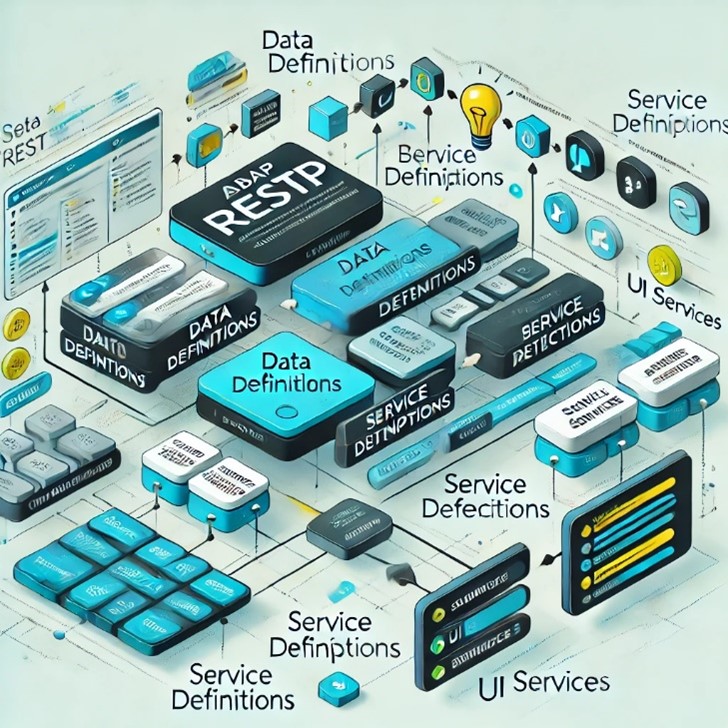 La arquitectura del Modelo de Programación ABAP RESTful se compone de varios elementos clave que trabajan juntos para permitir la creación de aplicacione. Estos elementos son: